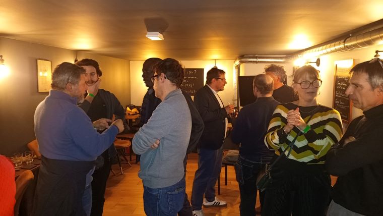 A la suite de cette présentation (qui a duré une heure) il était temps de "passer à table" pour grignoter les préparations du buffet avec un verre de vin, bière ou cocktail. Mais le sujet était tellement passionnant que Brice a été très entouré et a dû répondre aux nombreuses questions posées durant toute cette seconde partie